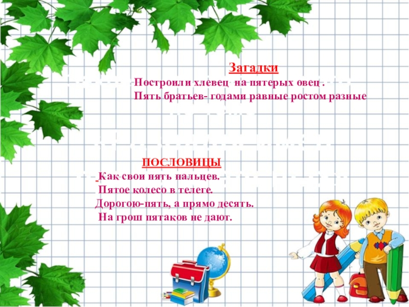 Сколько лапок у мангуста, лепестков в цветке капусты, пальцев на куриной ножке и на задней лапе кошки, рук у Тани вместе с Петей и сторон всего на свете , да и океанов в мире, знает циферка…