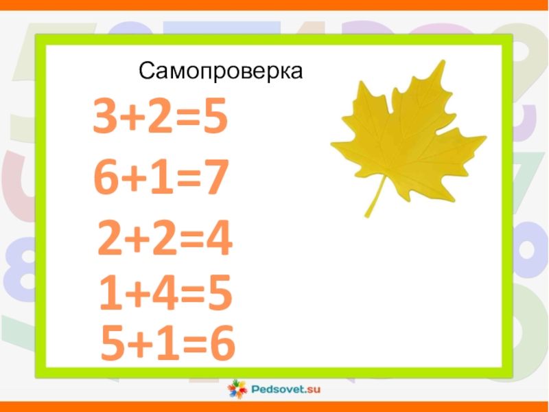 Самопроверка3+2=56+1=72+2=41+4=55+1=6