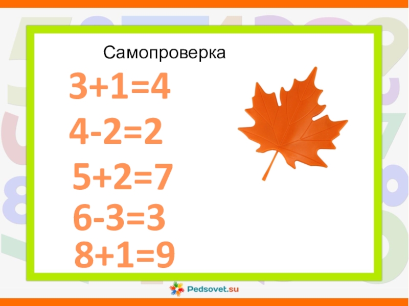 Самопроверка3+1=44-2=25+2=76-3=38+1=9