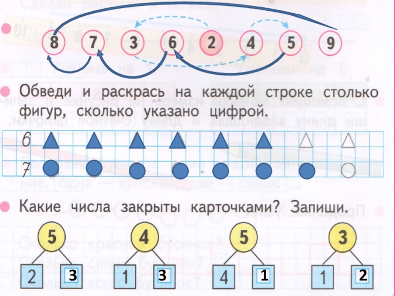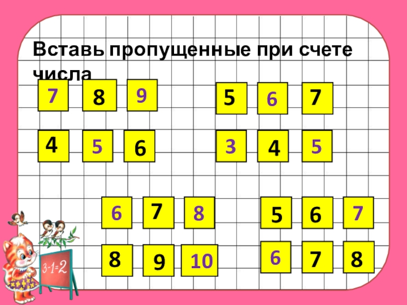 Вставь пропущенные при счете числа 7    9 7, 5 7, 7, 6 7, 7,