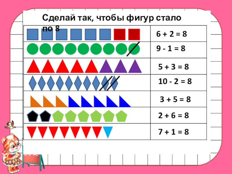 Сделай так, чтобы фигур стало по 86 + 2 = 89 - 1 = 85 + 3