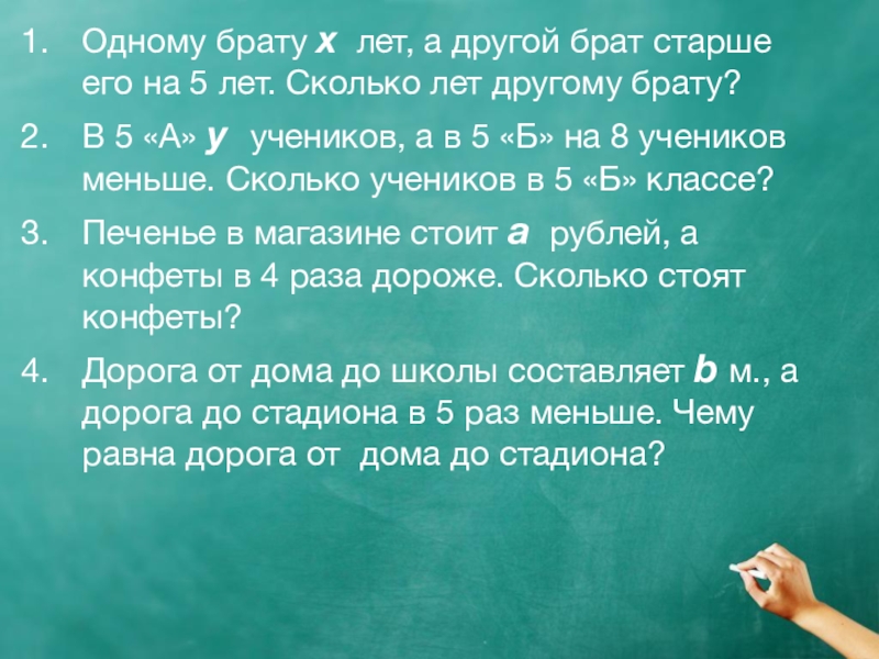 Слайд 6Одному брату x лет, а другой брат старше его на 5