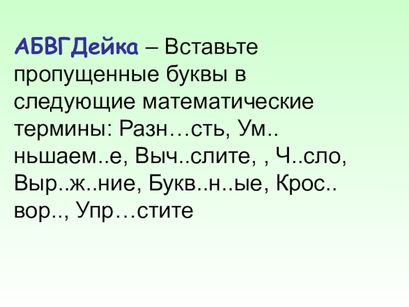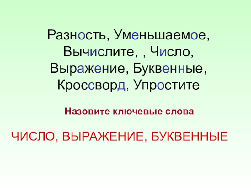 ЧИСЛО, ВЫРАЖЕНИЕ, БУКВЕННЫЕ