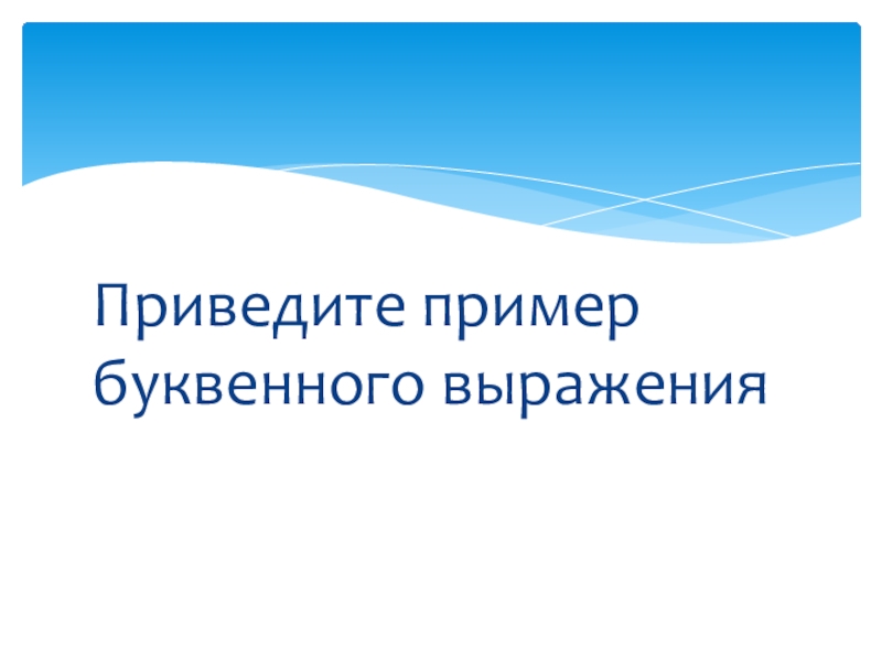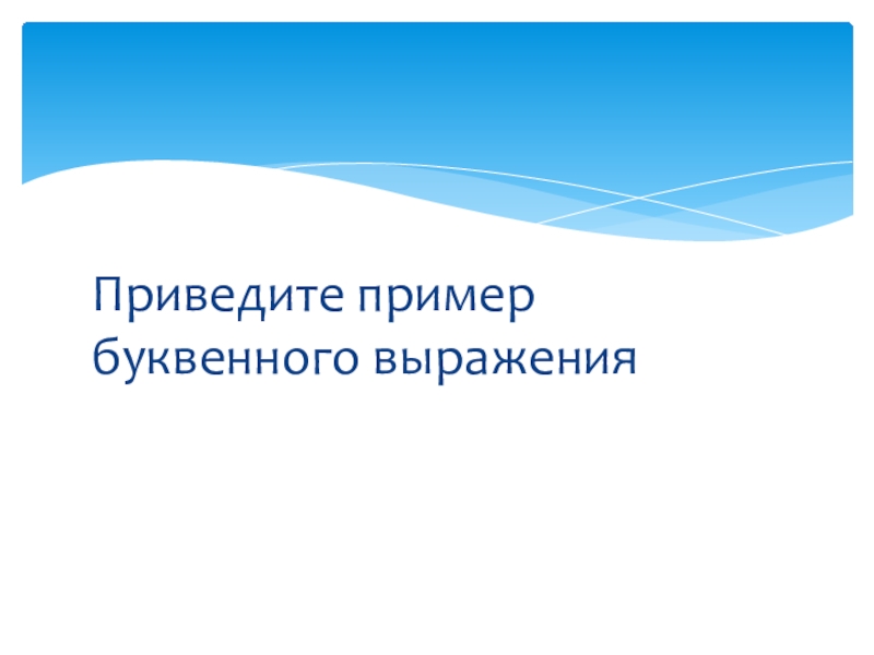 Слайд 2Приведите пример буквенного выражения