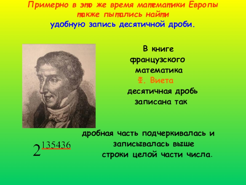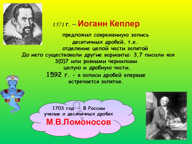 1703 год - В России учение о десятичных дробях М.В.Ломоносов