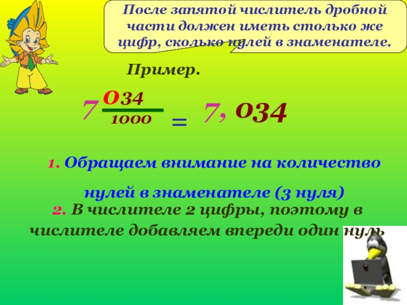 1. Обращаем внимание на количество нулей в знаменателе (3 нуля)