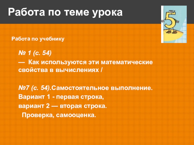 Работа по теме урока Работа по учебнику № 1 (с. 54)— Как используются эти математические свойства