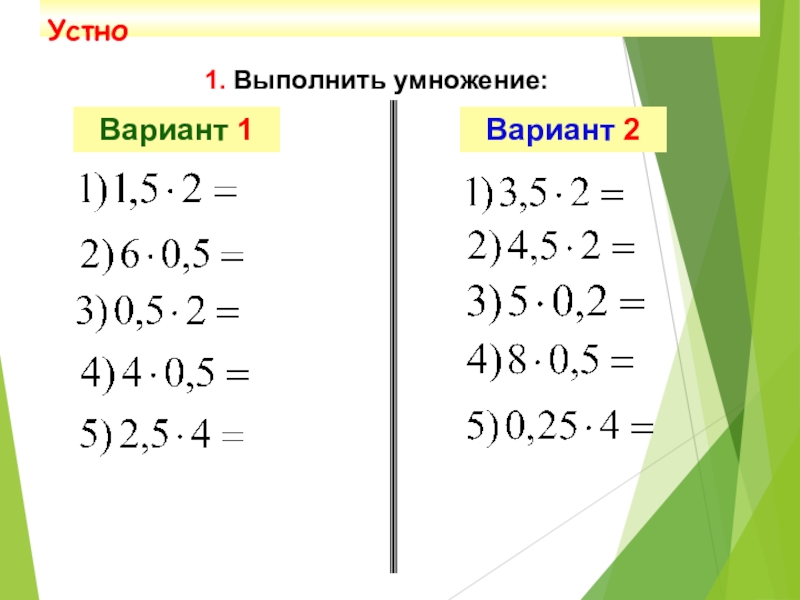 Устно 1. Выполнить умножение:Вариант 1Вариант 2