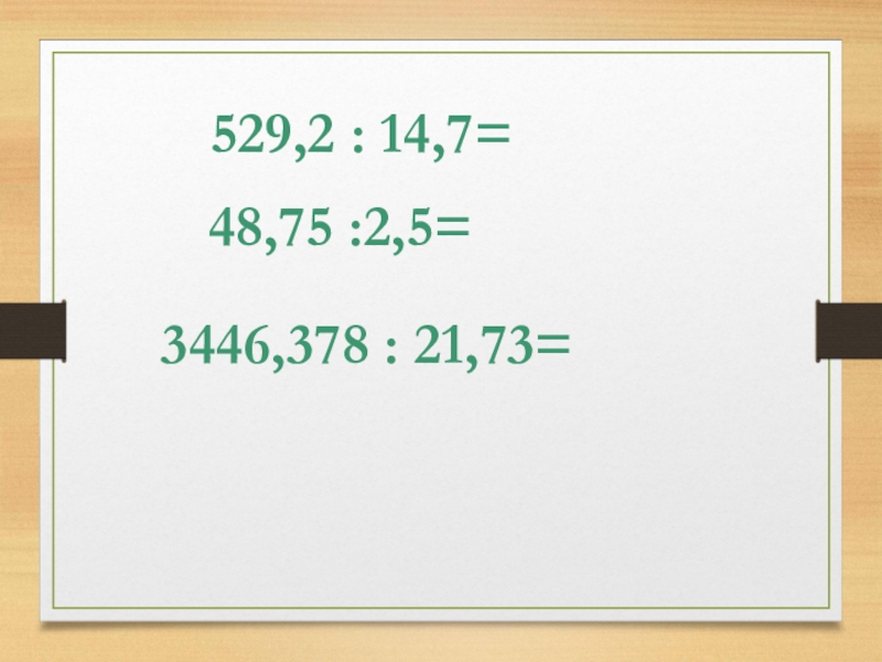48,75 :2,5=3446,378 : 21,73= 529,2 : 14,7=