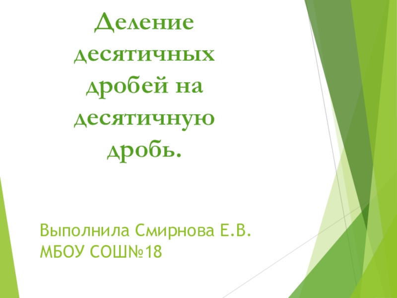 Выполнила Смирнова Е.В. МБОУ СОШ№18Деление десятичных дробей на десятичную дробь.