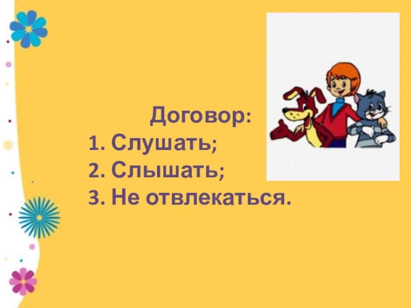 1. Слушать; 2. Слышать; 3. Не отвлекаться.