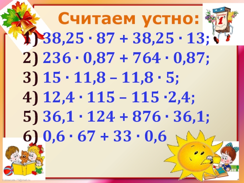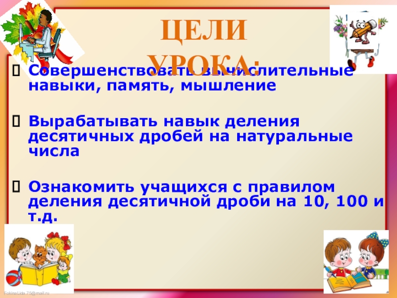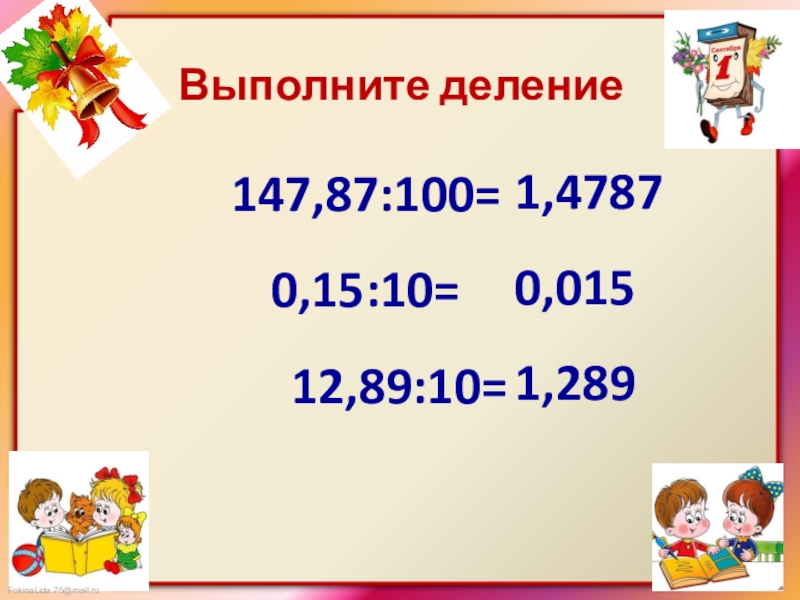 Ознакомить учащихся с правилом деления десятичной дроби на 10, 100 и т.д.