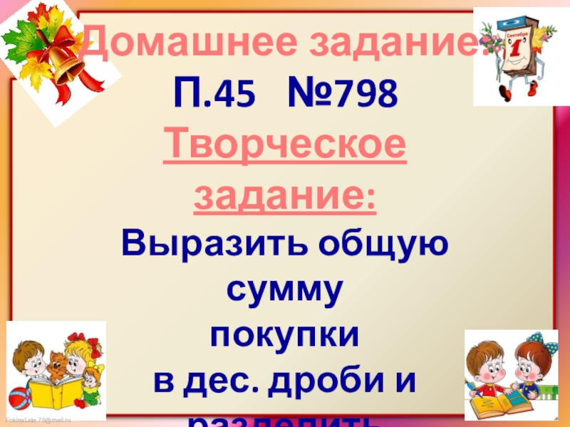 Это сайт презентаций, где можно хранить и обмениваться своими презентациями, докладами, проектами, шаблонами в формате PowerPoint с другими пользователями. Мы помогаем школьникам, студентам, учителям, преподавателям хранить и обмениваться учебными материалами.