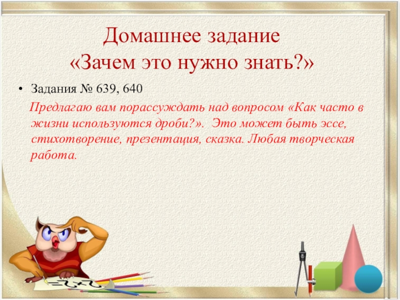 Это сайт презентаций, где можно хранить и обмениваться своими презентациями, докладами, проектами, шаблонами в формате PowerPoint с другими пользователями. Мы помогаем школьникам, студентам, учителям, преподавателям хранить и обмениваться учебными материалами.