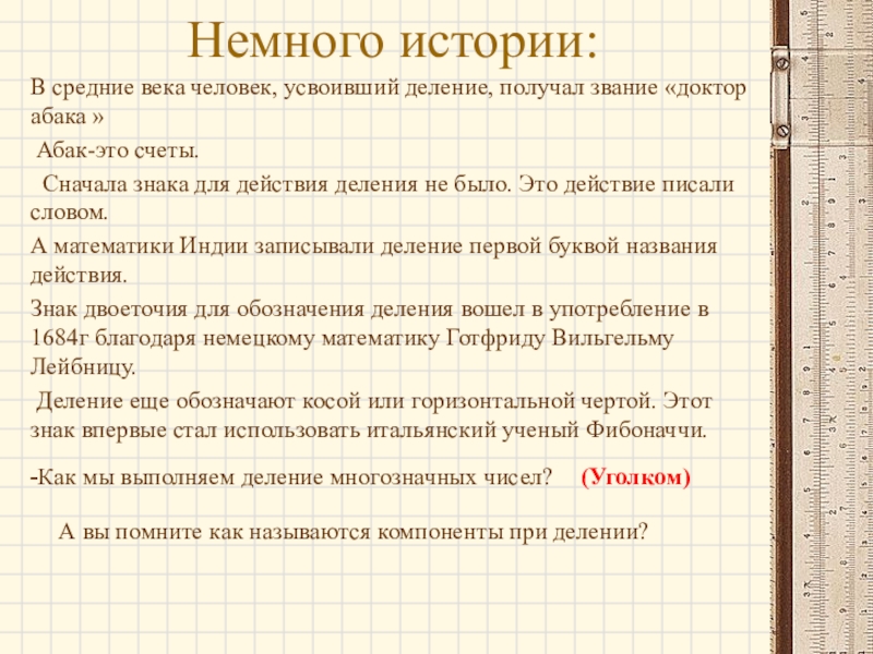 А вы помните как называются компоненты при делении?