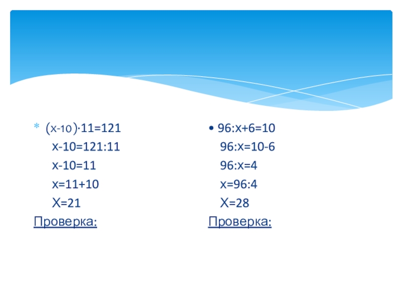 • 96:х+6=10