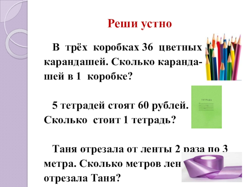 Таня отрезала от ленты 2 раза по 3