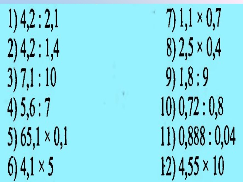 Презентация по математике на тему Деление десятичных дробей (устный счет, 5 класс) Математика