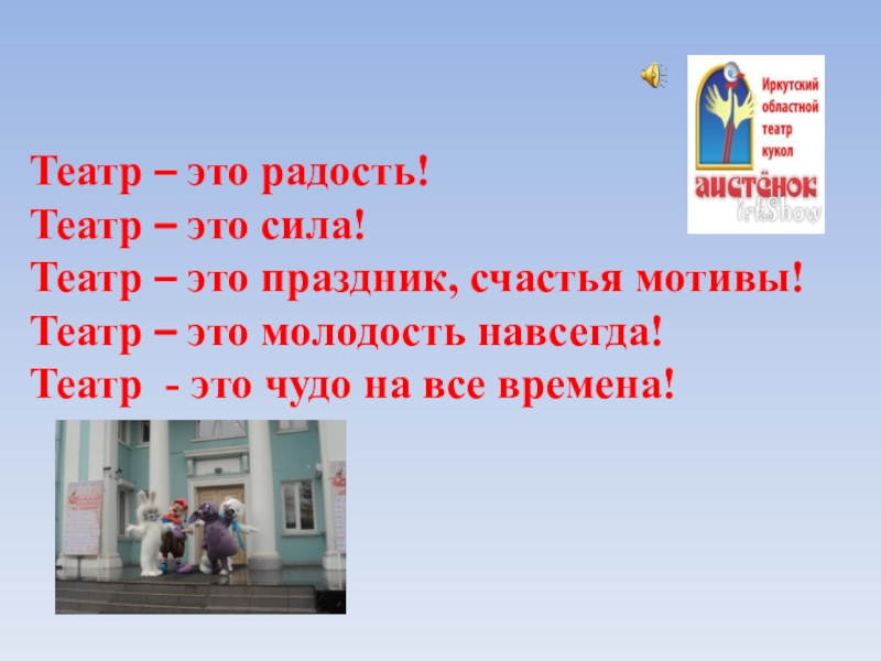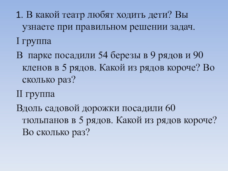 Слайд 10 1. В какой театр любят ходить дети? Вы узнаете при