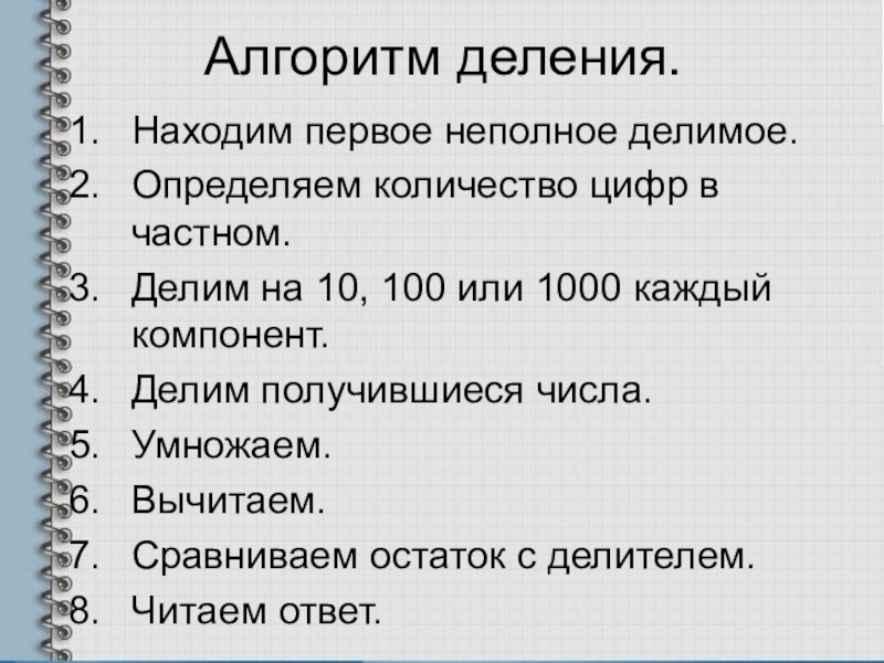 Тема: Письменное деление на числа,