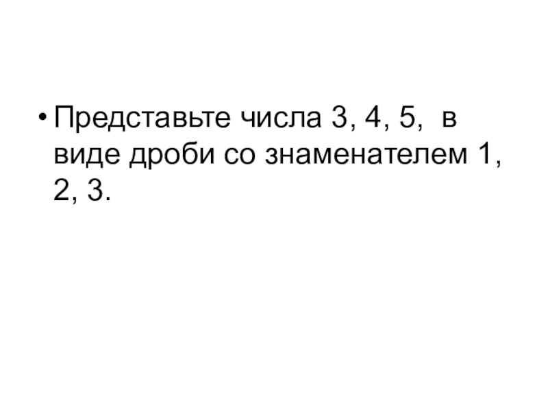 Представьте числа 3, 4, 5, в виде дроби со знаменателем 1, 2, 3.