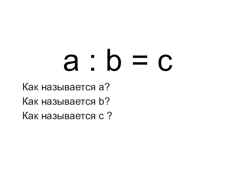 a : b = c Как называется а? Как называется b? Как называется c ?