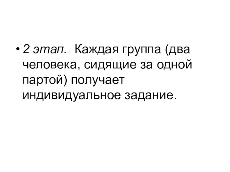 2 этап. Каждая группа (два человека, сидящие за одной партой) получает индивидуальное задание.