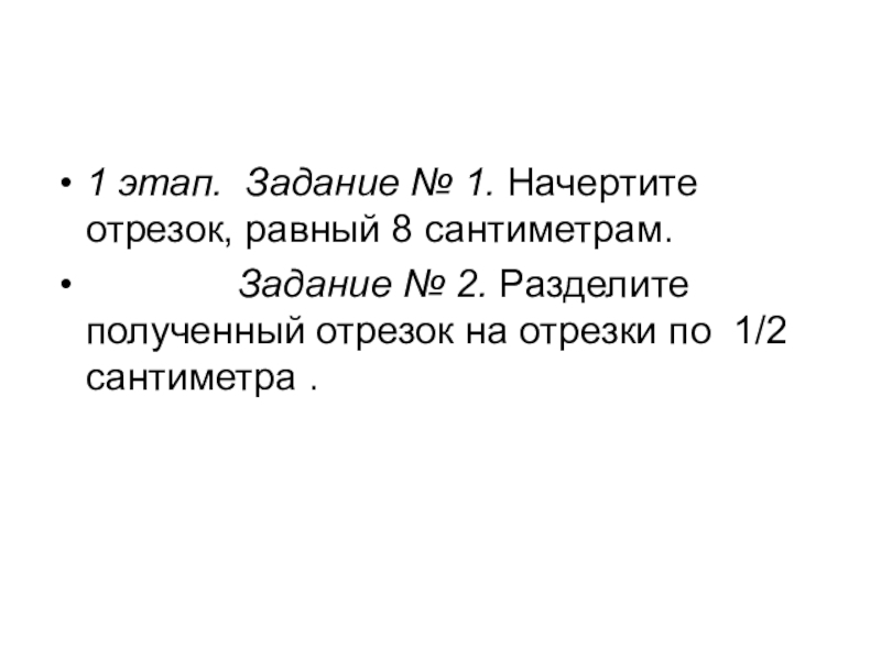 1 этап. Задание № 1. Начертите отрезок, равный 8 сантиметрам.       Задание