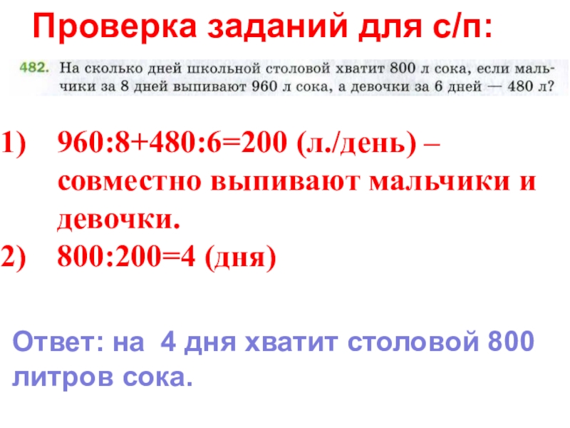 960:8+480:6=200 (л./день) – совместно выпивают мальчики и девочки.