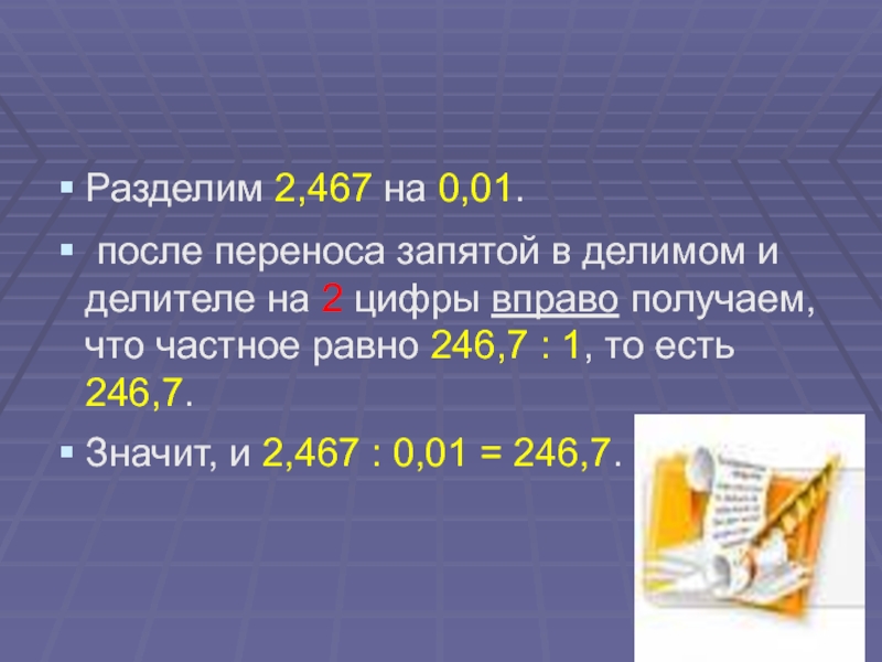 Перенесем в делимом и делителе запятую на две цифры вправо.