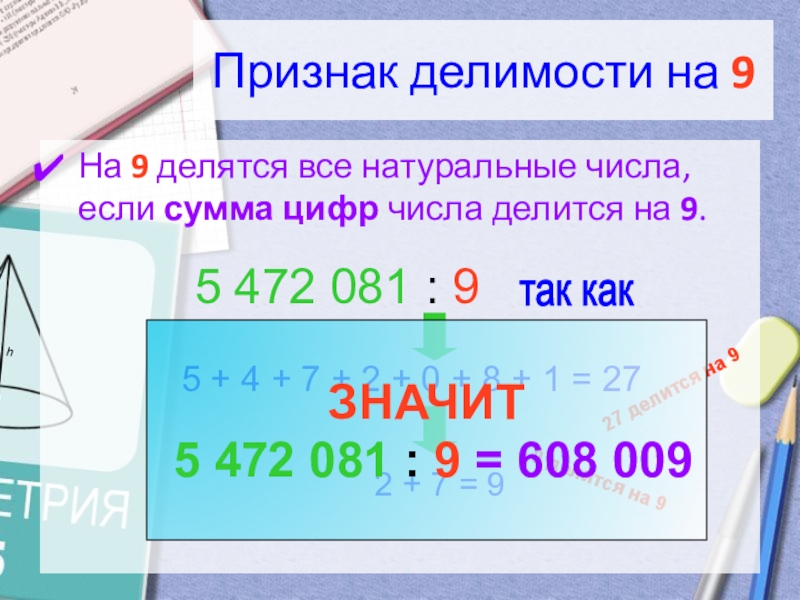 5 + 4 + 7 + 2 + 0 + 8 + 1 = 27