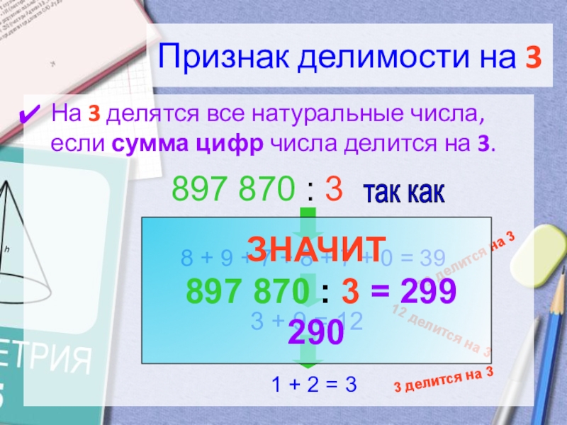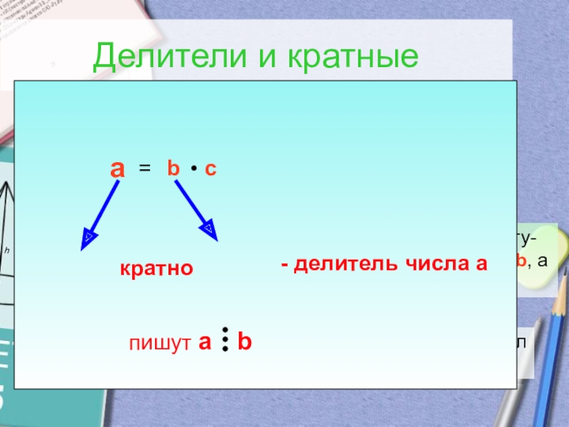 Если натуральное число а делится нацело на нату-ральное число b, то число а называют кратным b, а число b – делителем числа а.