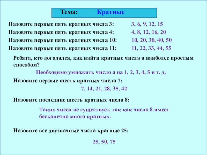 Ребята, кто догадался, как найти кратные числа а наиболее простым способом?