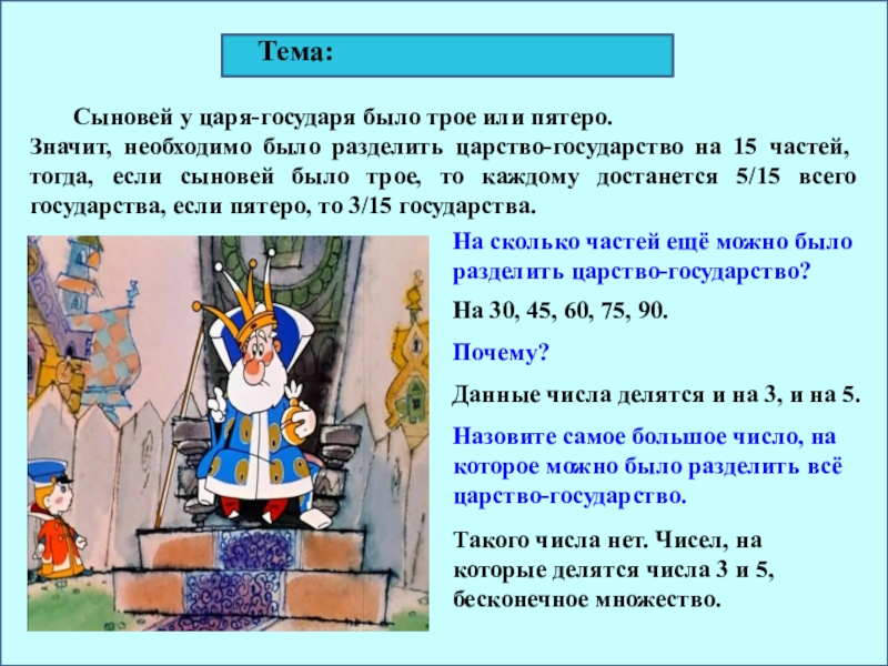 Назовите самое большое число, на которое можно было разделить всё царство-государство.