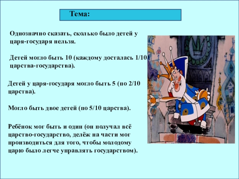 Детей у царя-государя могло быть 5 (по 2/10 царства).