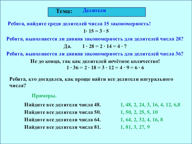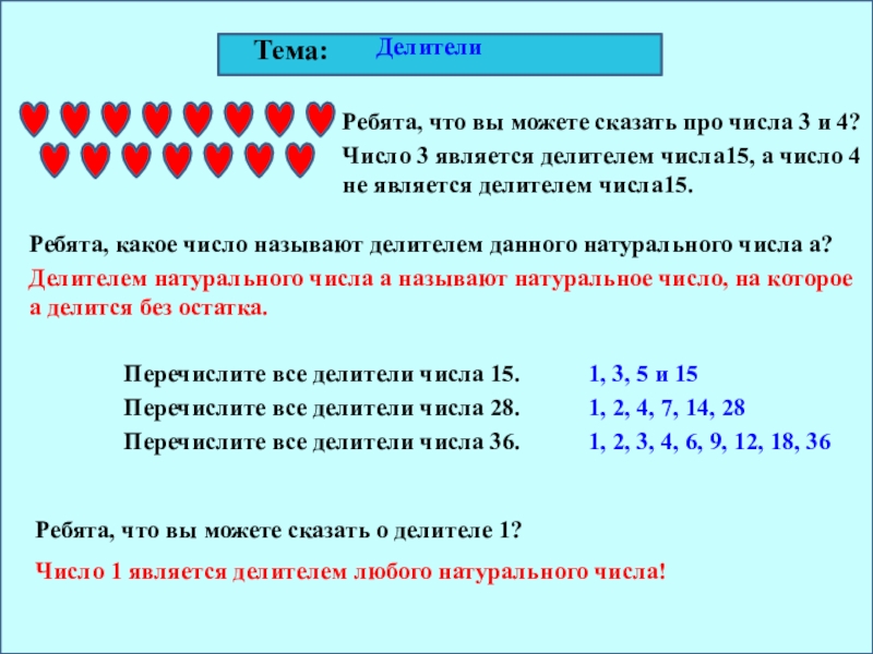 Ребята, какое число называют делителем данного натурального числа а?