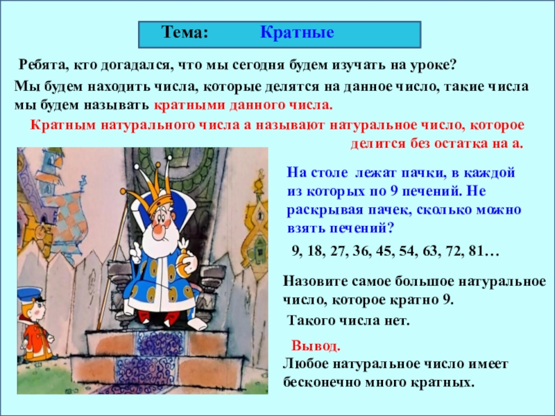 Кратным натурального числа а называют натуральное число, которое делится без остатка на а.