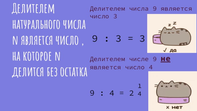 Делителем числе 9 не является число 4