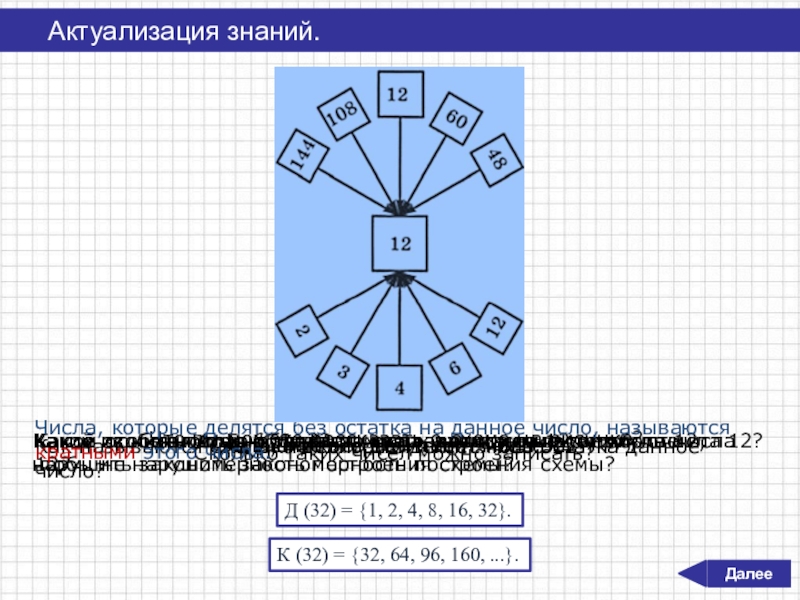 Какие из чисел 1, 5, 6, 8, 32 можно записать снизу от числа 12, чтобы не нарушить закономерность построения схемы?