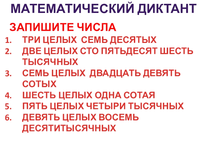 ПЯТЬ ЦЕЛЫХ ЧЕТЫРИ ТЫСЯЧНЫХ