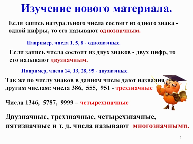 Двузначные, трехзначные, четырехзначные, пятизначные и т. д. числа называют многозначными.