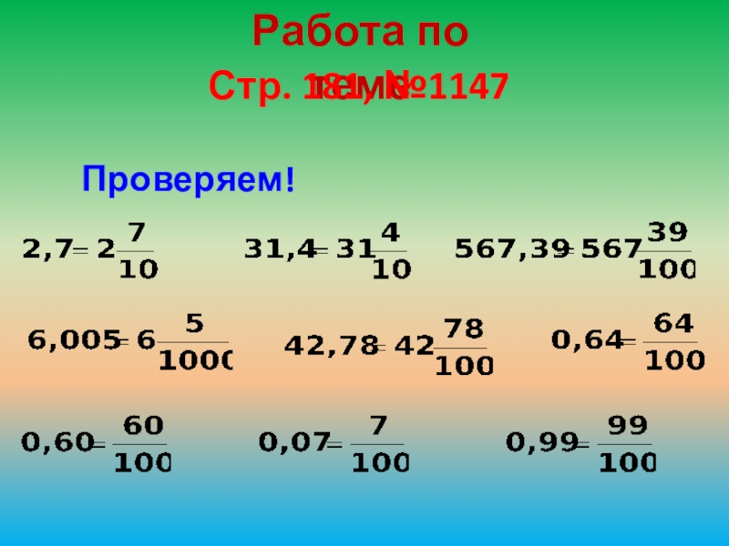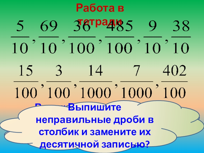 Выпишите неправильные дроби в столбик и замените их десятичной записью?