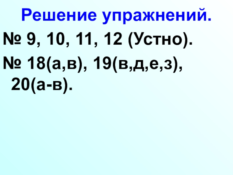 Слайд 20№ 9, 10, 11, 12 (Устно).