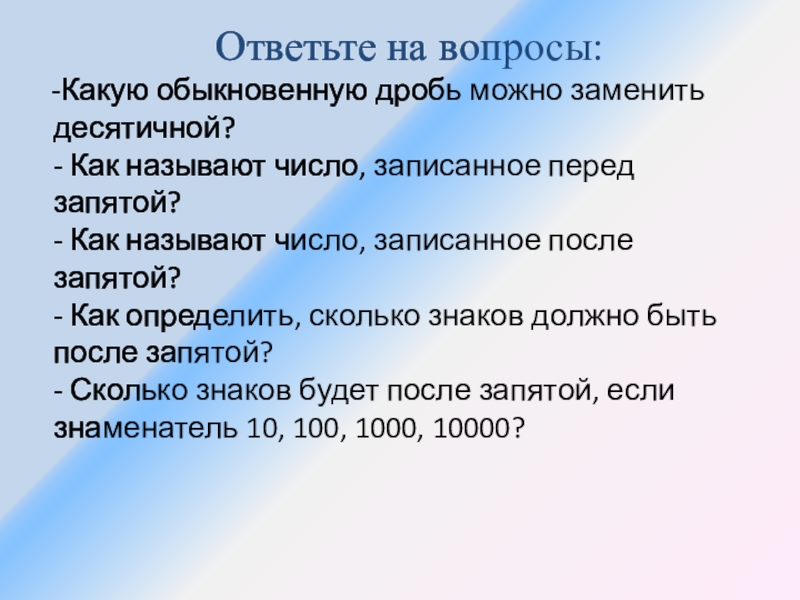 Ответьте на вопросы: