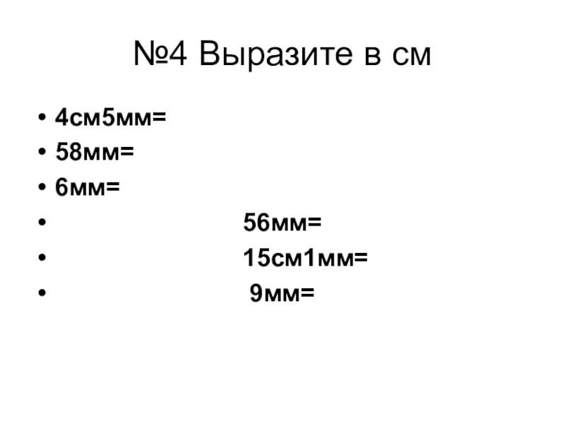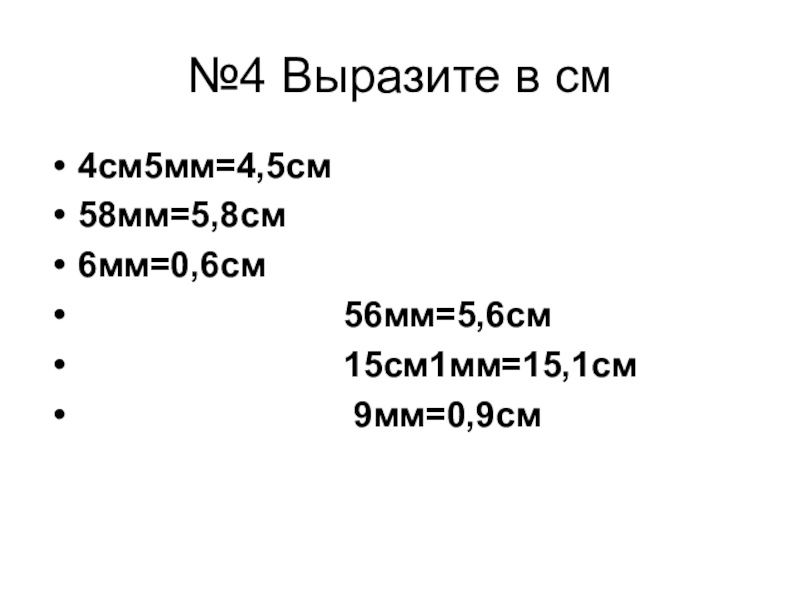 №4 Выразите в см4см5мм=4,5см58мм=5,8см6мм=0,6см