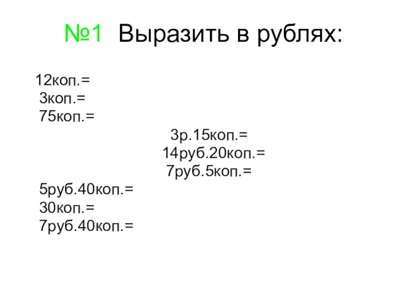 Слайд 3№1 Выразить в рублях: