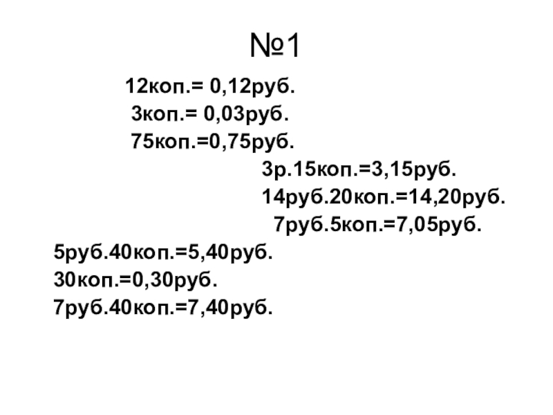 №1 Выразить в рублях:    12коп.=