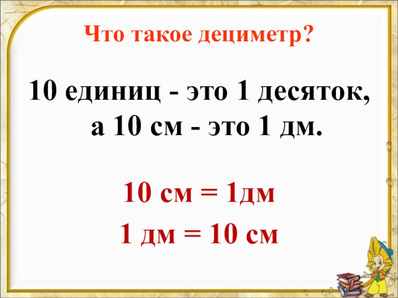 Презентация, доклад по математике на тему Дециметр (1 класс)
