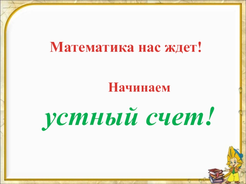 Математика нас ждет!Начинаемустный счет!