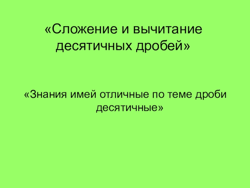 Слайд 4«Сложение и вычитание десятичных дробей»